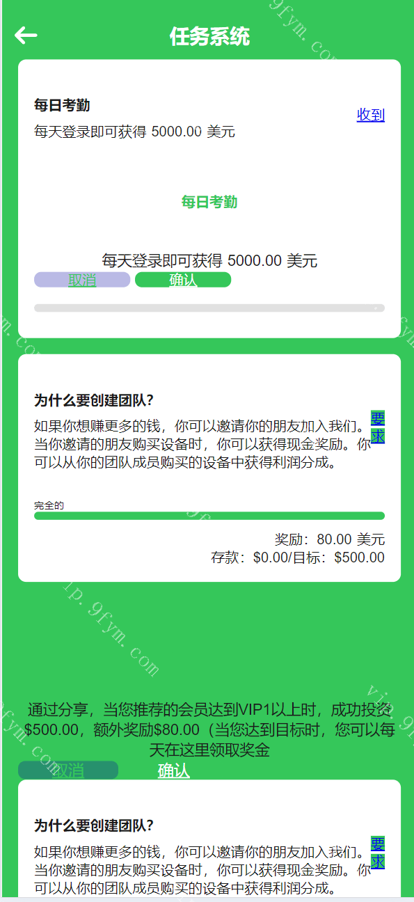 海外矿机/基金/任务系统裂变/促销理财投资源码,测试还行,应该就是之前那种产品,差不多改个图文字变其他的产品,改改产品就可以。