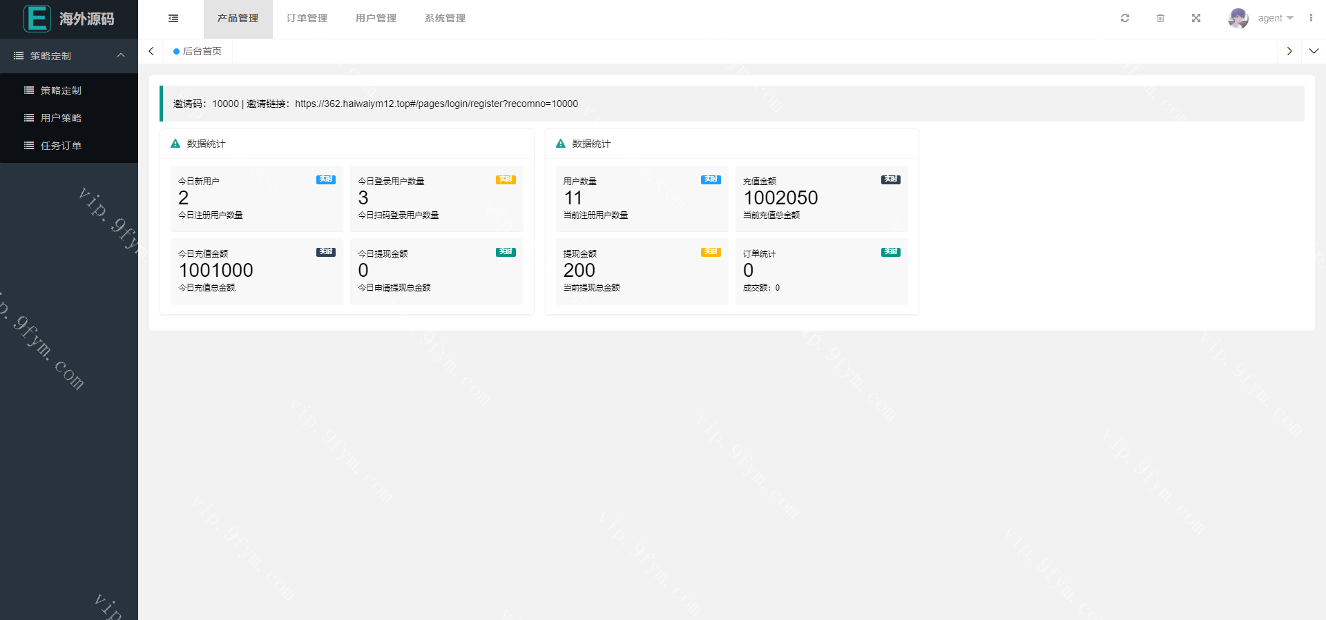 可添加用户策略,注册送礼等功能。