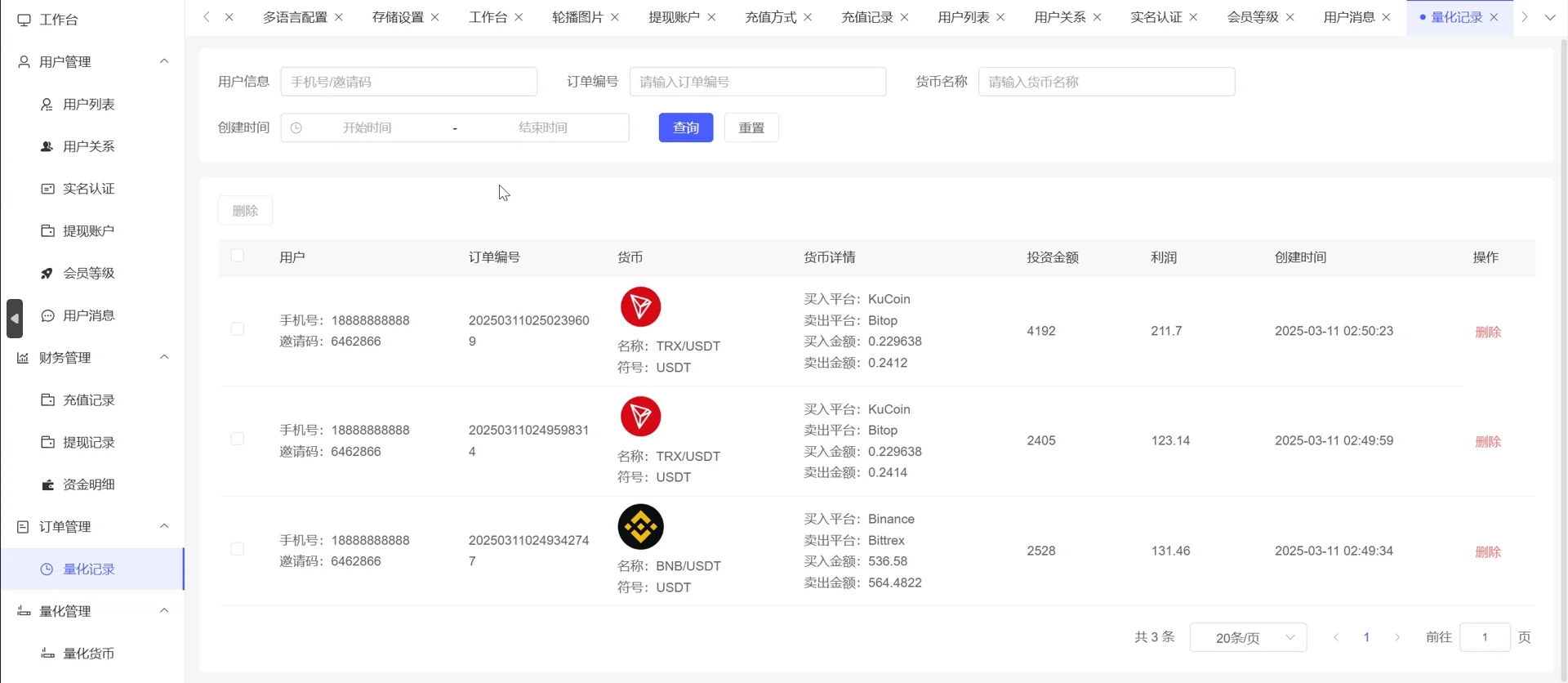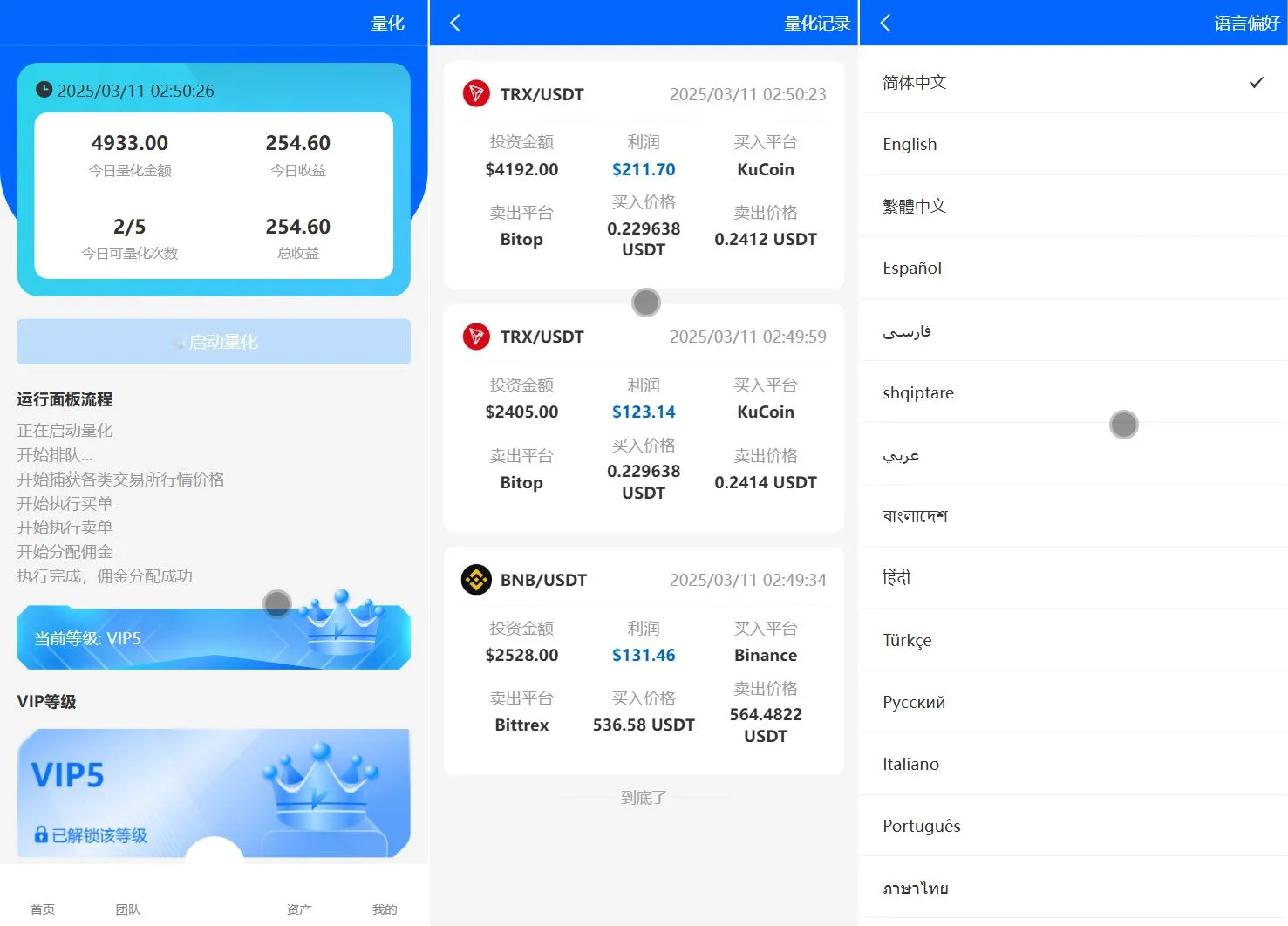 海外精品源码 » 虚拟币量化交易系统_钱包投资理财源码_19种语言_三级分销_前端UNIAPP_后端VUE_代理端VUE_服务端thinkPHP6_四端分离